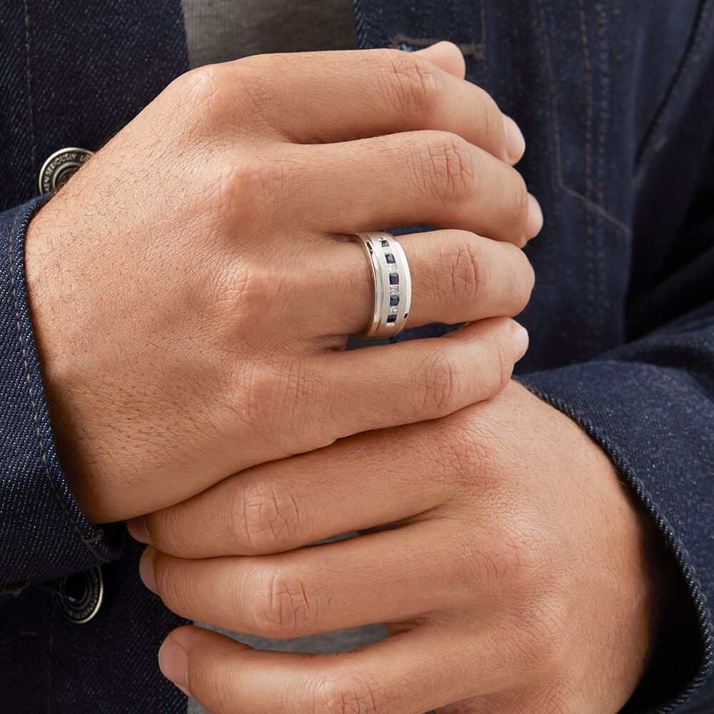 Men S Ring With 0 30 Carat Tw Of Diamonds Sapphire In 10kt White Gold